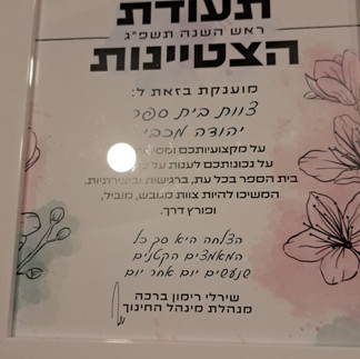 ערב ראש השנה תשפ"ג זכה צוות התחזוקה והשירות בבית הספר, בראשות מנהל התחזוקה הבית-ספרי, רועי קצב, בתעודת הצטיינות מטעם מינהל החינוך של עיריית תל-אביב יפו. התעודה ניתנה לצוות על המקצועיות, המסירות והנכונות של רועי והצוות המסור לענות, בכל עת וברגישות ויצירתיות, על צרכי בית הספר.